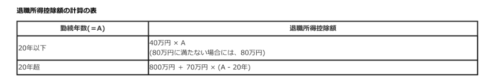 退職所得控除額は次のように計算されます。
